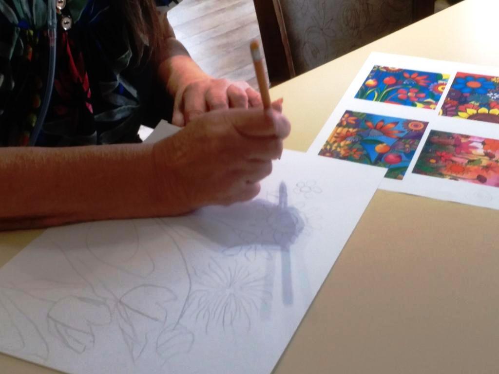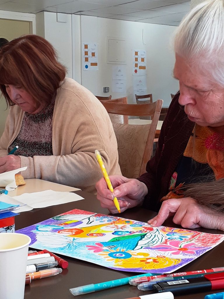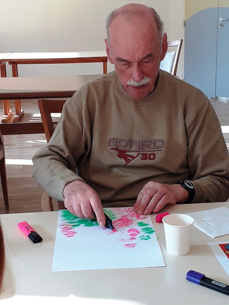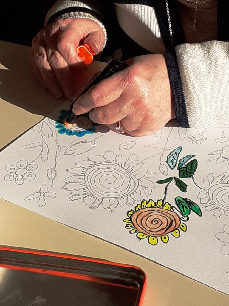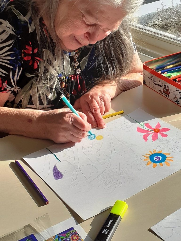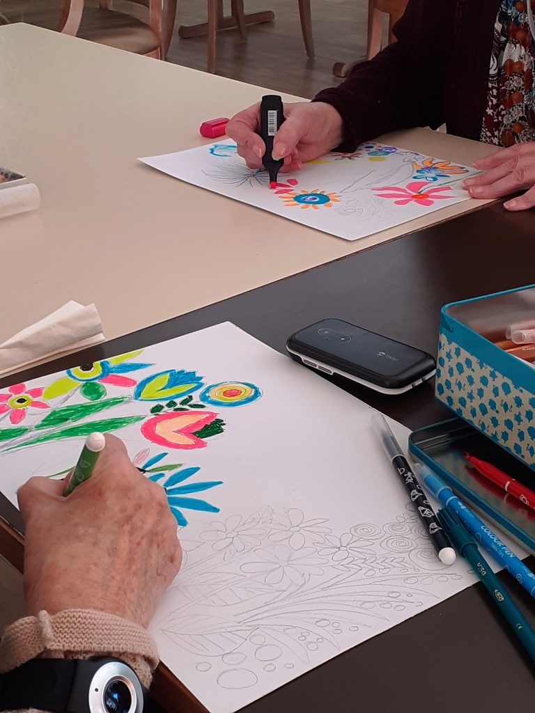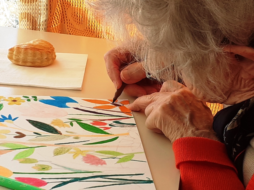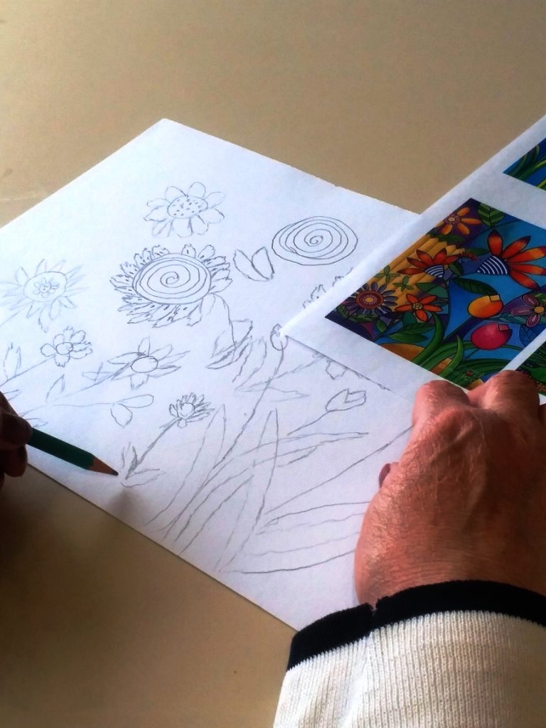 Avec crayons, feutres et pastels gras, nous avons imaginé un petit coin de notre jardin…