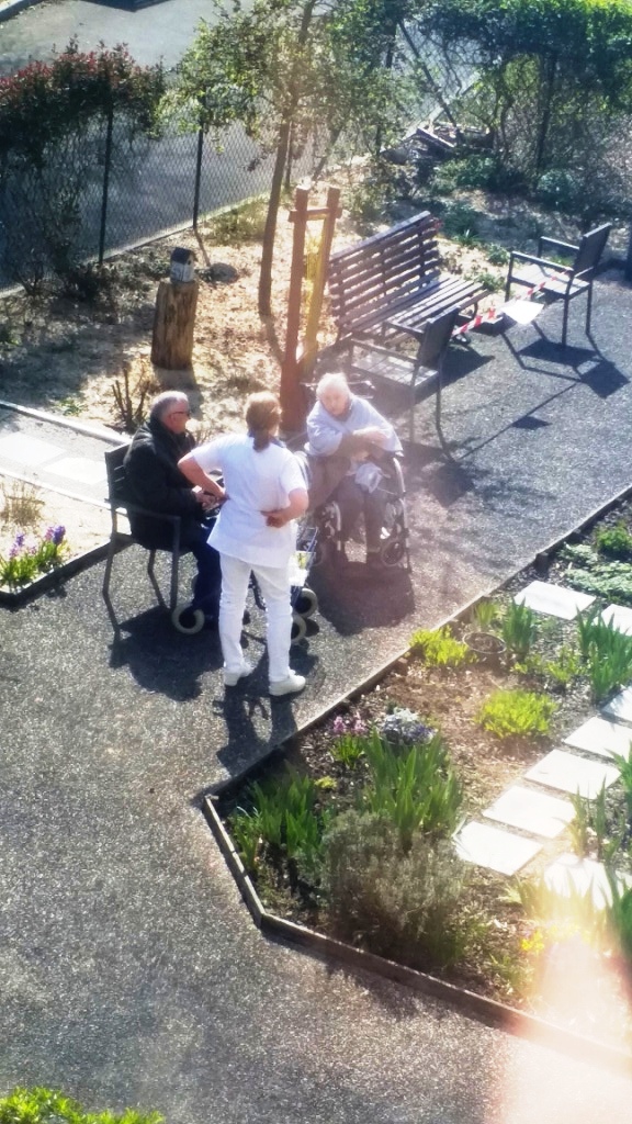 C’est avec beaucoup de plaisir (même s’il fait un peu frisquet) que nous sommes « sortis » de la Résidence. Notre jardin est notre bouffée d’oxygène.