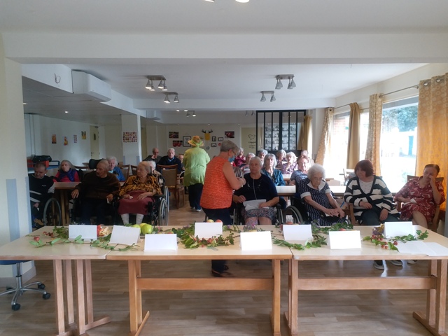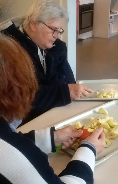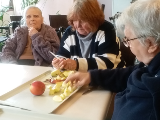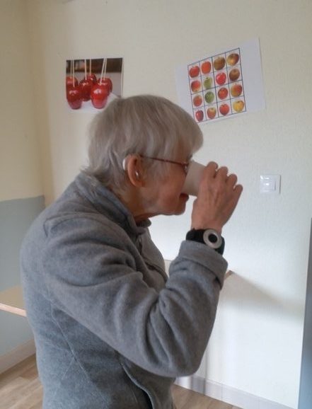 Afin d’en apprendre un peu plus sur la pomme, un après-midi DIAPORAMA a été organisé : de belles photos, les explications de la culture de la pomme, des images de sculptures de pommes et pour finir un quizz photos dont le but reconnaître les différents desserts à base de pommes. Croyez-moi cela nous a bien fait salivé !