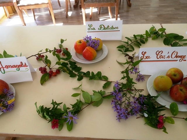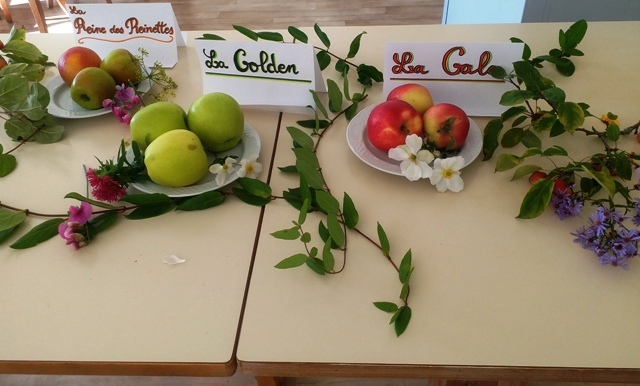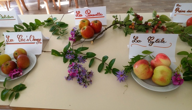 Et pour finir la semaine en beauté, nous avons organisé une dégustation de pommes « bien de chez nous » : Gala , Golden, Reine des reinettes, Cox orange …et quelques peu connues comme la Pirouette, la Daliclass, la Cybéle….